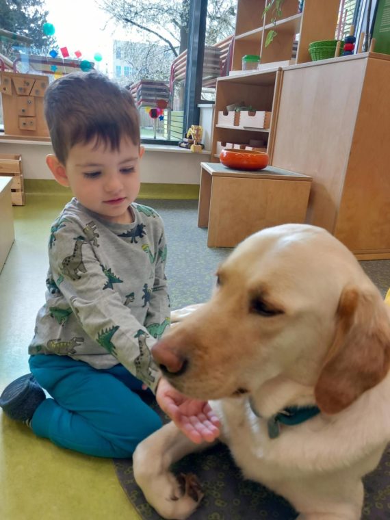 Hallo, ich heiße Amigo und  in ein ausgebildeter Assistenzhund. Ich freu mich auf den Besuch in der Krabbelstube.
