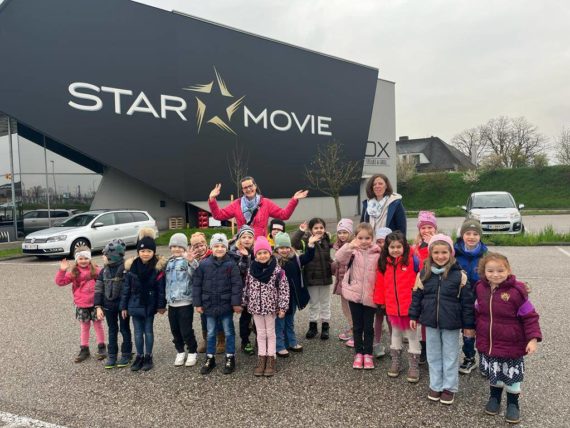 Die Schulanfänger fahren mit dem Linienbus ins Kino