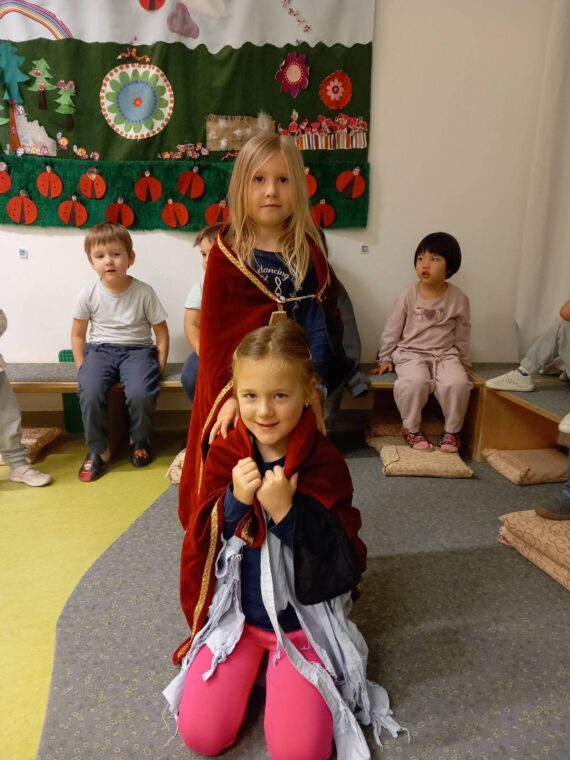 Wir basteln Kronen und bereiten uns für das Fest vor.