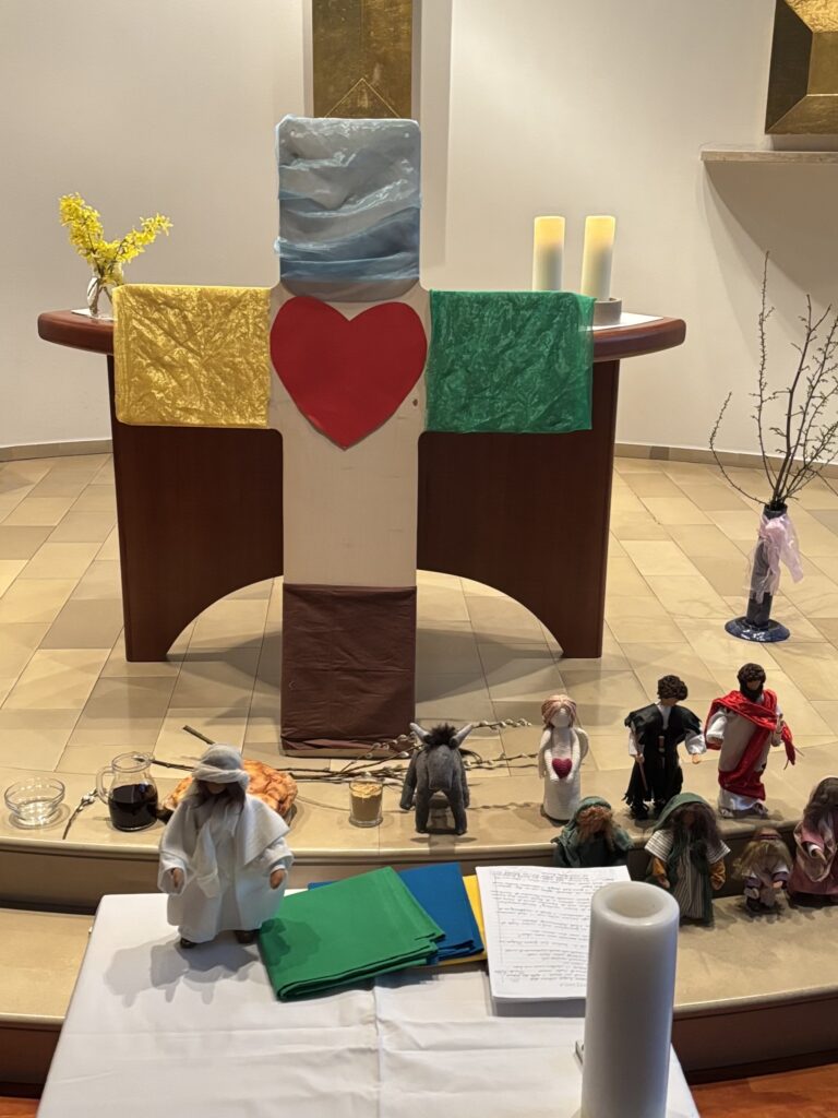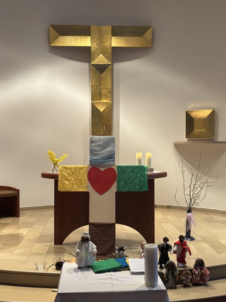 Wir singen Lieder und hören die Geschichte von Jesus.