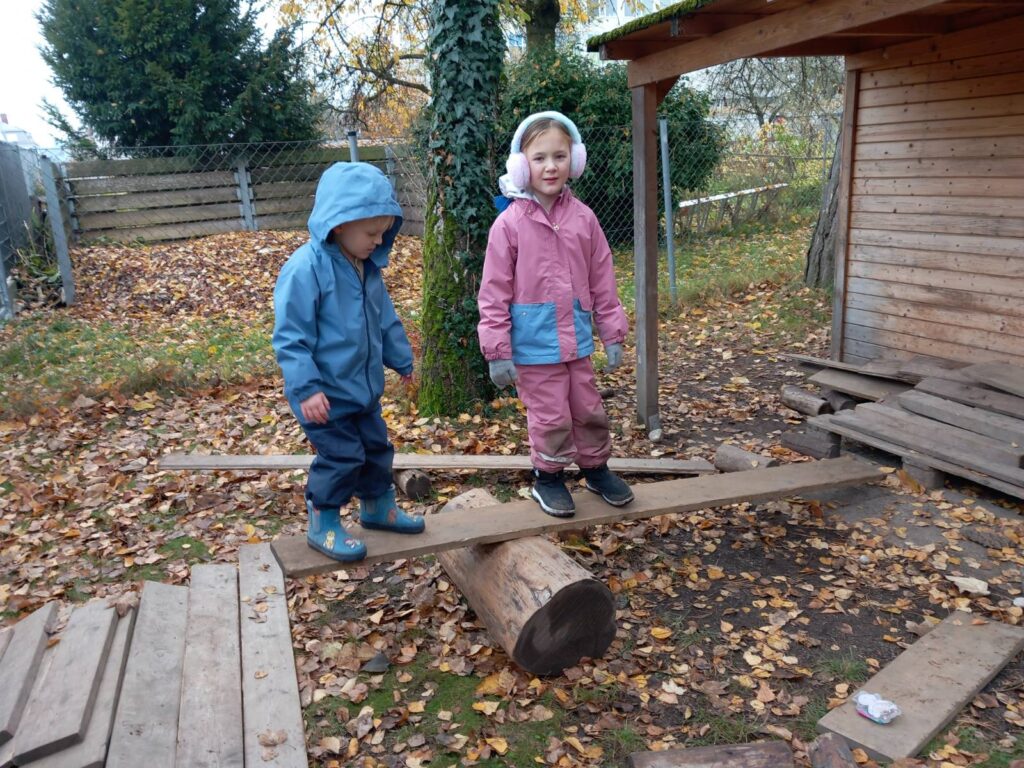 Wir erproben die Gesetze der Schwerkraft. Was müssen wir tun, damit das Brett waagrecht steht.