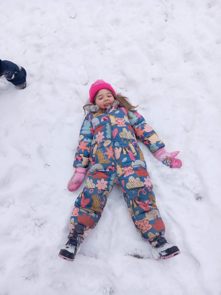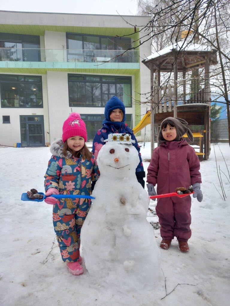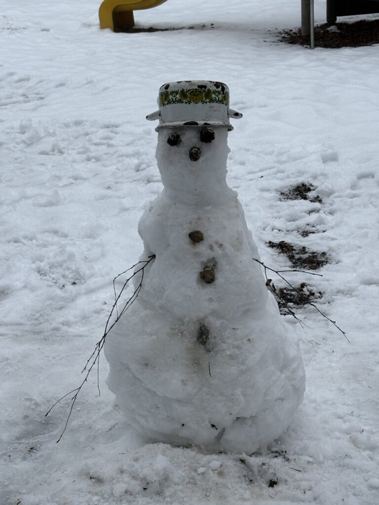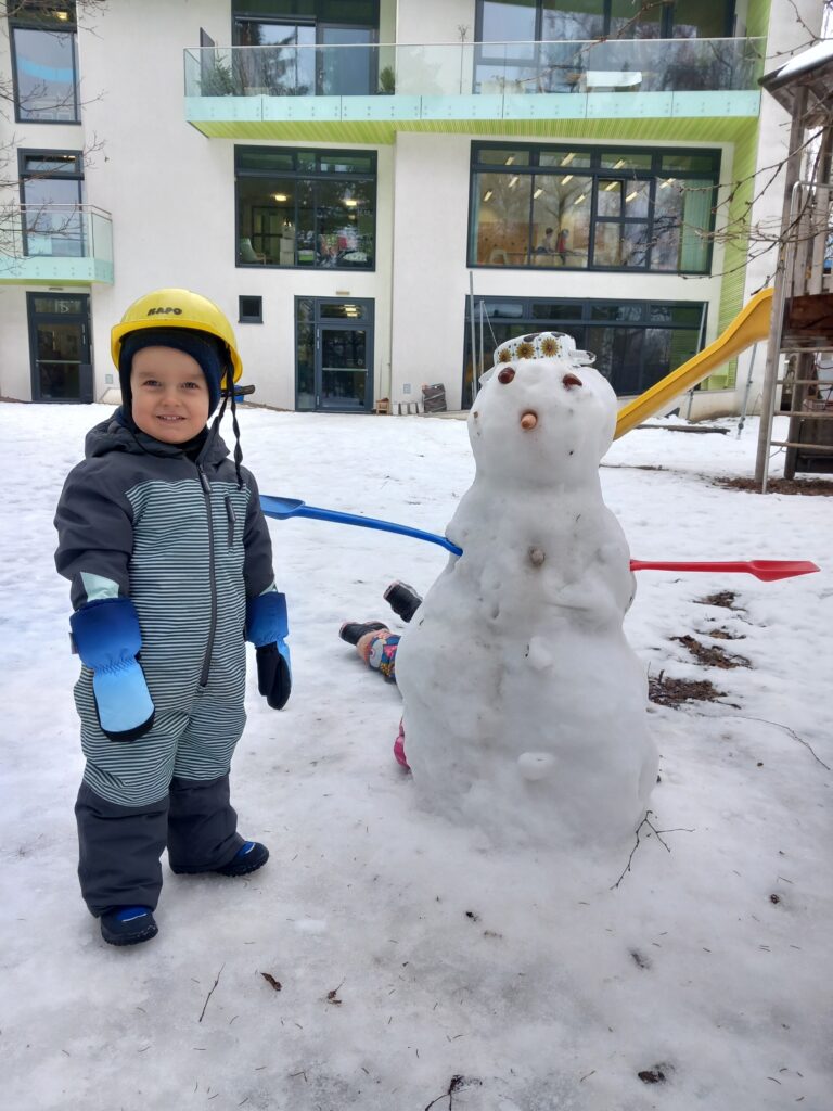 Wir bauen einen Schneemann und machen Schnee-Engel.
